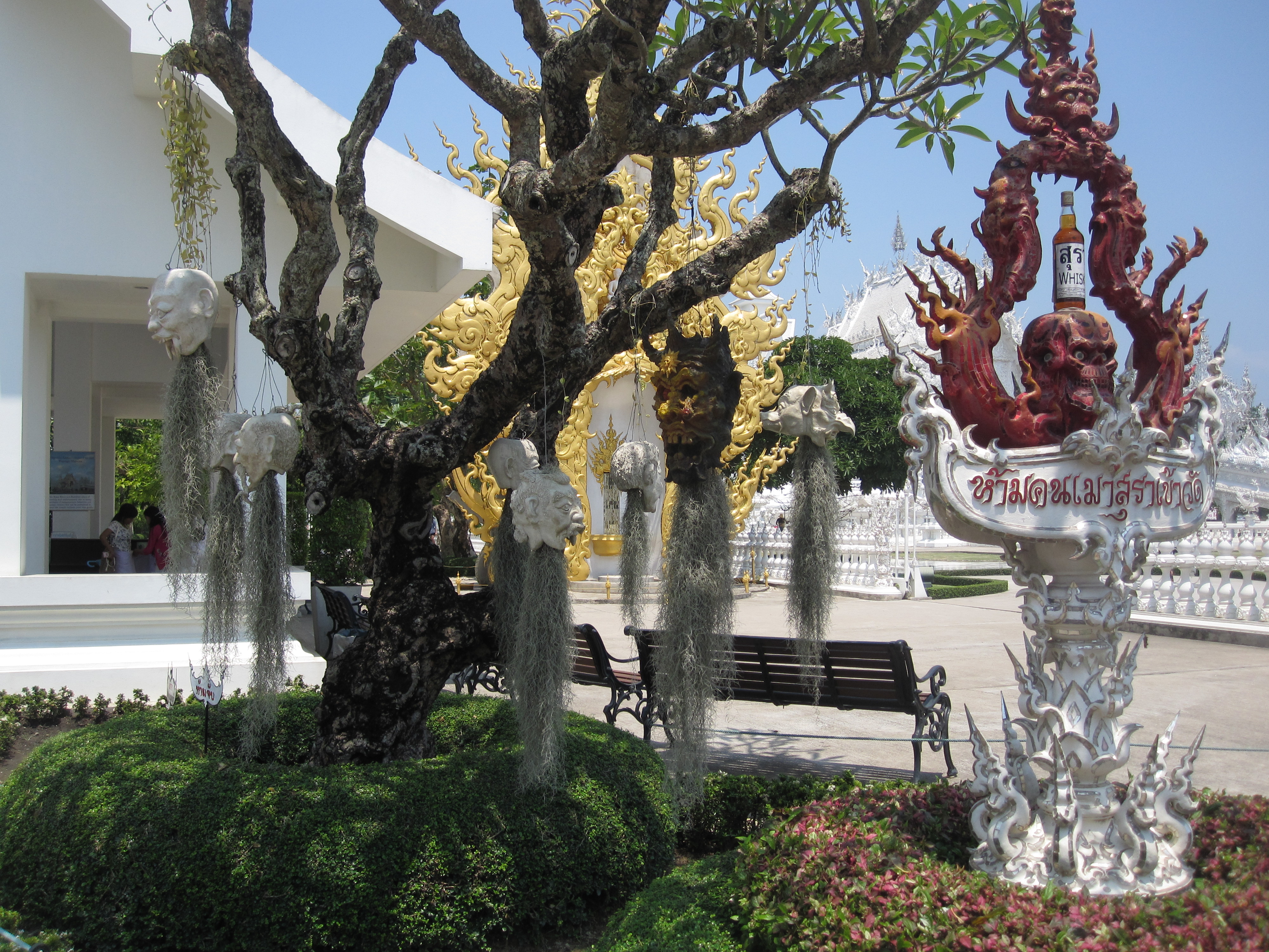 Structurally similar to other Thai temples, the White Temple is outside of Chiang Rai in Northern Thailand. It was pretty spectacular, silver and white, sparkling like diamonds in the unrelenting sun. It was pretty, sure, but I couldn’t help but sigh internally. Another temple, great.