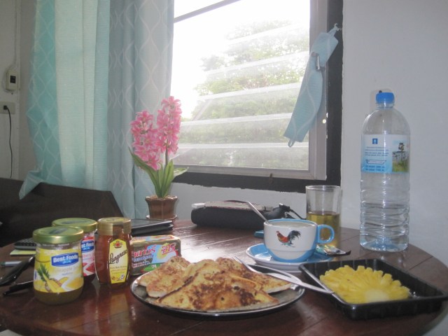 I made myself French toast in my electric wok. They were delicious and exactly what I wanted, if a bit impractical, incredient wise. It’s definitely not an item on the Thai menu, and not even something a backpacker could even really make for themselves. But I left the world of backpacking a while ago, when I started buying items I had no room for, like extra cloths and laptop speakers.